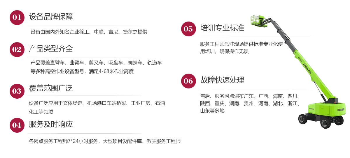 公司在發(fā)展歷程中堅定實(shí)行大客戶戰(zhàn)略,致力于以優(yōu)質(zhì)的服務(wù)打造公司的品牌和核心競爭力,現(xiàn)已在廣東、廣西、海南、四川、陜西、湖南、重慶、河南、湖北、貴州等多地建立了完善的售后服務(wù)網(wǎng)點(diǎn),24小時為客戶排憂解難。今后我們將結(jié)合市場需求,不斷創(chuàng)新業(yè)務(wù)模式、優(yōu)化設(shè)備結(jié)構(gòu)、加強(qiáng)運(yùn)營管理、擴(kuò)大服務(wù)網(wǎng)點(diǎn)、提升服務(wù)水平,形成以設(shè)備租賃、銷售、二手設(shè)備交易等全方位一站式的全面服務(wù)體系,用高標(biāo)準(zhǔn)高質(zhì)量的服務(wù)讓客戶在和公司合作的過程中實(shí)實(shí)在在感受到省心、省力、省錢的體驗,在客戶心目中樹立“家鋒”的品牌形象。